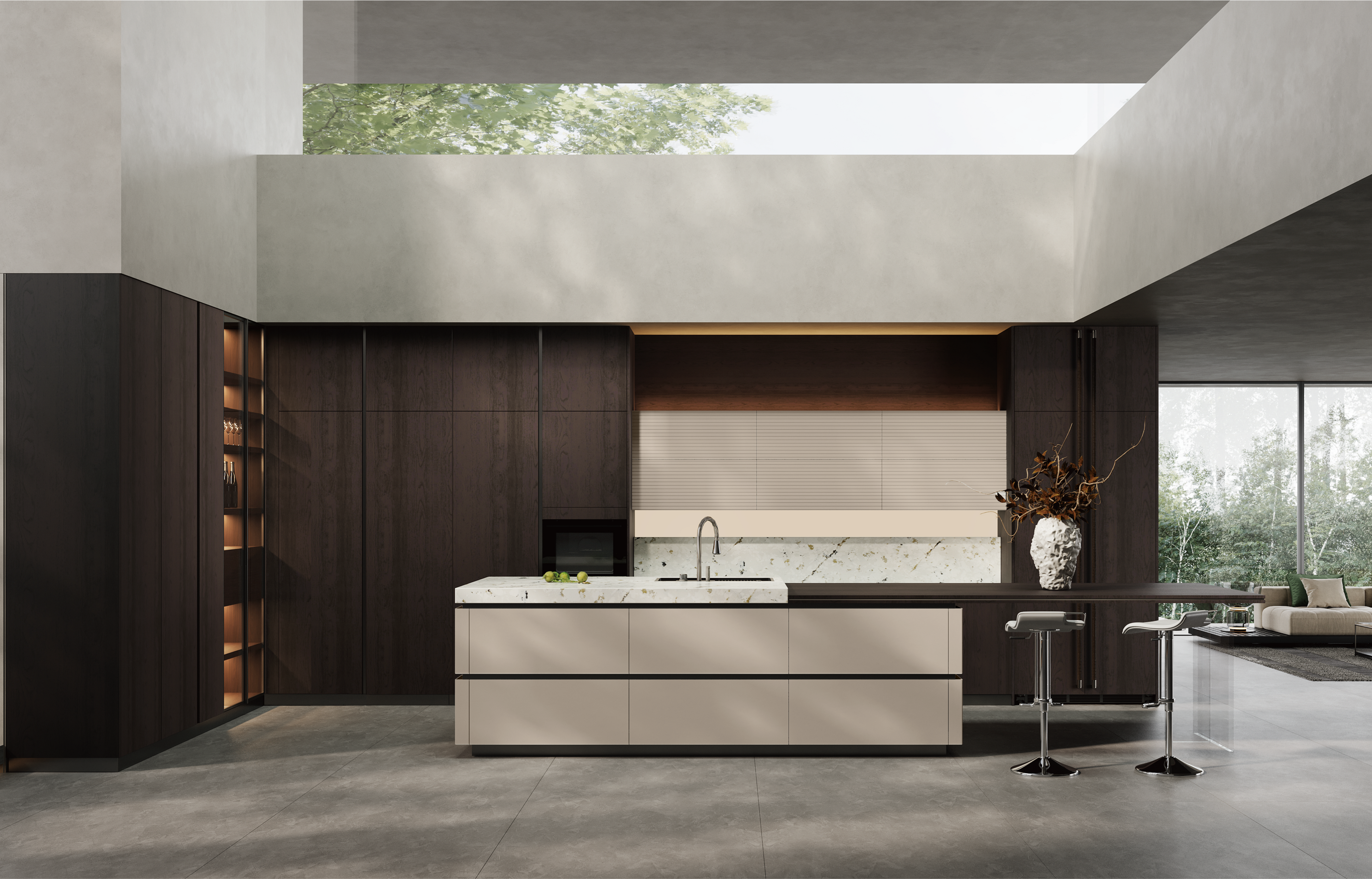 通过亚美国际厨柜量体裁柜,定制出适合主厨下厨的烹饪区和洗涤区的舒适高度。